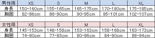 (サイズ) XS, S, M, L, XL(男性用・女性用あり)
